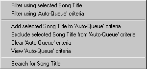Auto-Queue can create song sets using criteria entered using the drop down menu.
