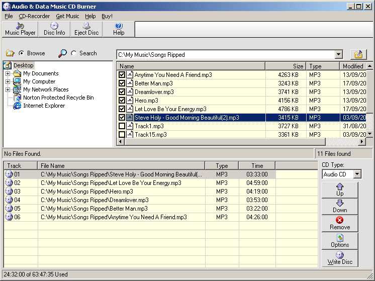 & Data Music CD Burner enables you to create your own custom audio CD compilations