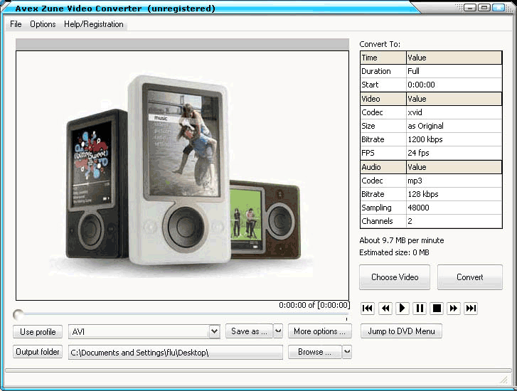 to Zune's WMV or MP4 video format in one simple click. The software features superb
