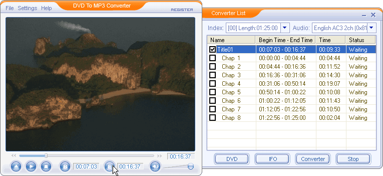 chapters of the DVD file using DVD to MP3 Converter. Before converting you