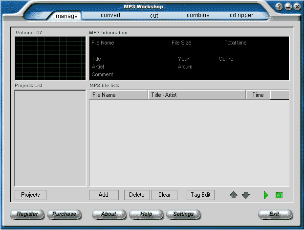 or play, convert and rip Music CDs. MP3 Workshop also comes with an ID3 tag editor