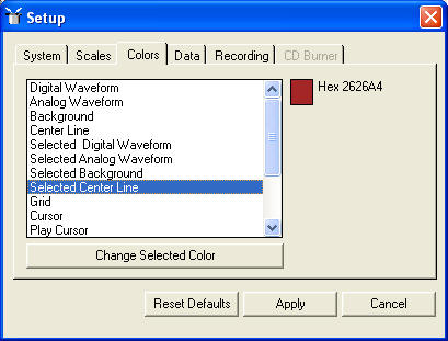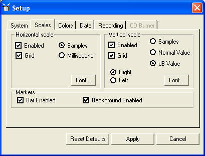 The properties window is displayed on 5 tabs, System, Scales, Colors, Data, Recording.