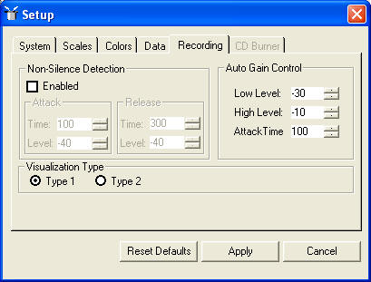 Non-Silence Detection when recording is set globally in the setup properties module but can be toggled off and on in the recoding modules.