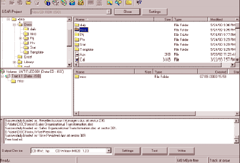 option to generate audio and data tracks from mastered CDs Integrated log