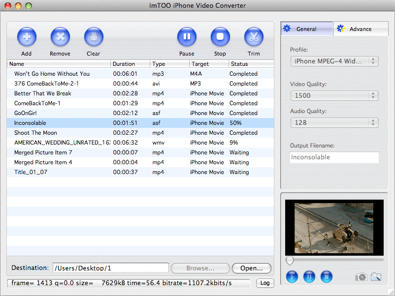 like M4A, WAV and MP3 etc, on your Max directly. --- ImTOO iPhone Video Converter