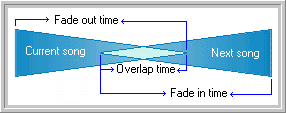 | DJ Mixer The DJ Mixer uses two sound streams to mimic two record decks. By adjusting timing values you can smoothly mix one song into another. Fade out, fade in and overlap times can be adjusted to produce the type of mix you want. You can start the mix any time by selecting another song or by pressing the Enter key to move to the next song in the queue. You can also tell it to automatically start mixing up to 30 seconds before the end of the song, this avoids any fade outs built into the song. Quick change volume preset Use this preset to set a second volume level ( 0 to 99% ) Press the space bar to lower the volume to the preset value, press the space bar again to raise the volume back to normal. |