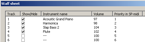 | | | | Mobile Music Polyphonic |  | | 2.Prepare to write your own music for ringtone. | | 1. Click 'New file' button to clear notes in score paper. | 2. Setup channel basic data. Click 'Staff sheet' to check channels that you want to create in new music file and setup musical instruments and volume for every channel as following image. | | | Note: click 'Show/Hide' item to show or hide all channels in score. | | 3. Adjust good position for score at Quick start guide. | 4. Setup Clef, Key signature, Time for score. a. Click 'Select' button and make sure not select 'Define first time' and 'Define second time' button. b. Click on the channel that you will setup above data(clef, key signature or time). c. Select Clef, Key signatrue or Time to setup correction data as following images. (Note: to select above function, click above button and popup a image menu, then move the mouse to corresponding button to popup corresponding dialog-box) |  |  |  |
