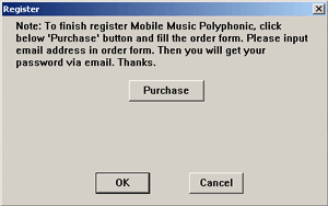 | | | | Mobile Music Polyphonic |  | | 6.Registering the software. | 1. Order workflow at Mobile Music Polyphonic software. a. Run Mobile Music Polyphonic and click 'Register' button as following image. b. Click 'Purchase' button. c. Fill the order form carefully. You must write right your email address, because we will send password via email. d. Next morning, you will receive one email including your password and register version software for Mobile Music Polyphonic. e. You are successful for purchasing Mobile Music Polyphonic. | | | 2. All upgrades are free to registered Mobile Music Polyphonic users. | | 3. Tech support is free for all users. | 4. What happens after sending in the order. You will receive an email confirming your order shortly after sending the online order form. Then, within 24 hours, you will receive a second email with your password, register version software and instructions to get started! | | 6. The rest symbol will be showed automatically. | 7. Move notes. When mouse cursor move on note, you could move the note in uprightness or level direction. |