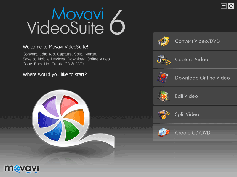 Movavi VideoSuite , you can capture, convert, split, combine, repair, and enhance