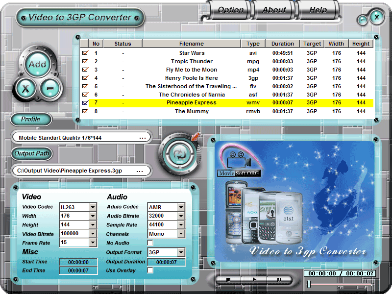 convert batches of popular video files to 3gp formats to be played on your mobile