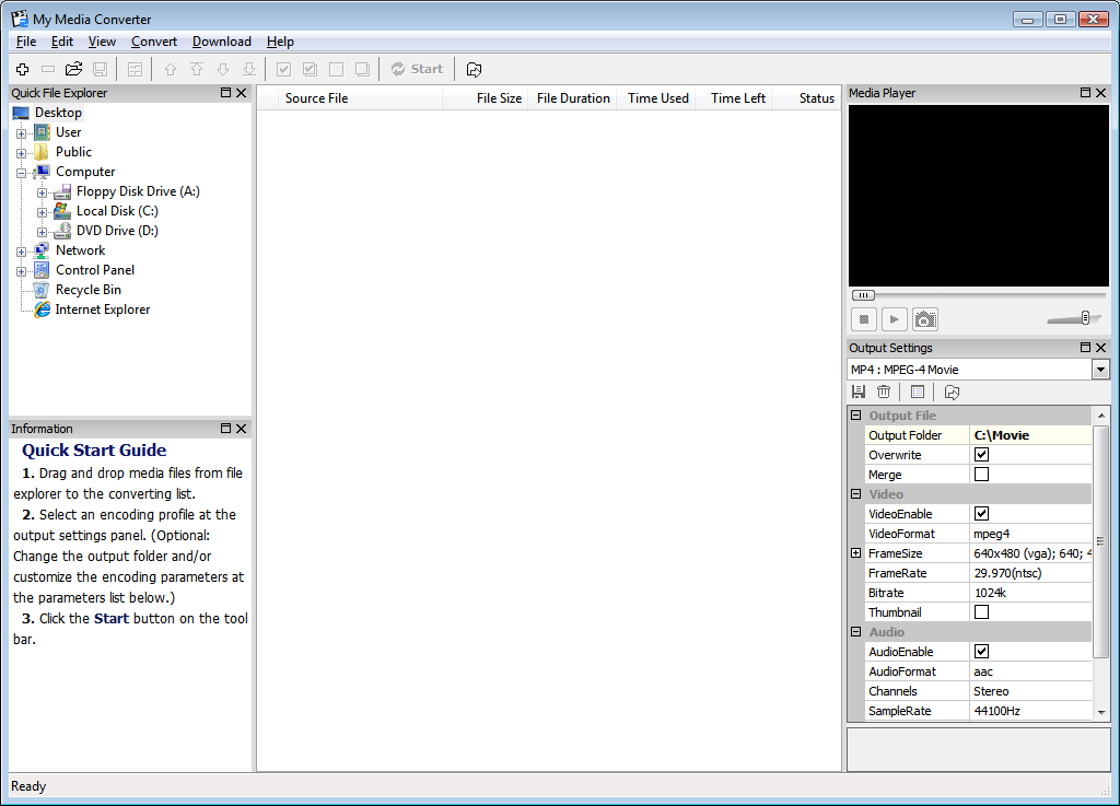 MP4, MPG, MPEG, OGG, RA, RMVB, RoQ, SWF, VOB, WAV, WMA, WMV...) Setting profiles