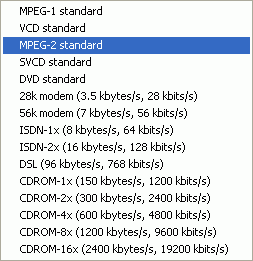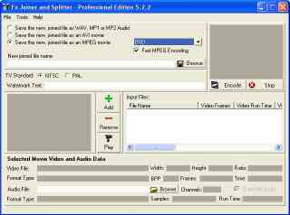 Your MPEG encoding option selection will set the default resolutions, bit rates and other properties to match the appropriate MPEG standard and the television standard you have selected.The demo version of Fx Joiner and Splitter will display only MPEG-1 and VCD encoding options.