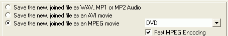 Your selection will enable the MPEG drop-down list and the fast encoding check box option.