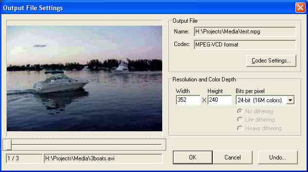 For example, if VCD is selected in the drop down list of MPEG codecs the file resolution will be set to match the size of the first file in your list of files to be joined.