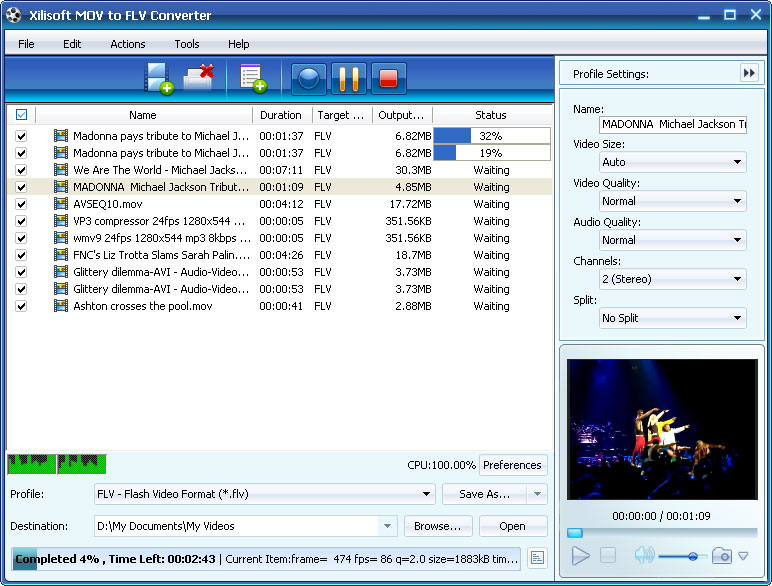 and more. 8.This MOV to FLV converter supports multithreading and batch process
